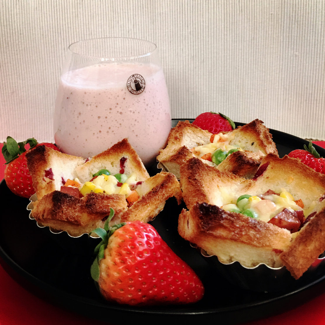 吐司披萨盏+草莓奶昔