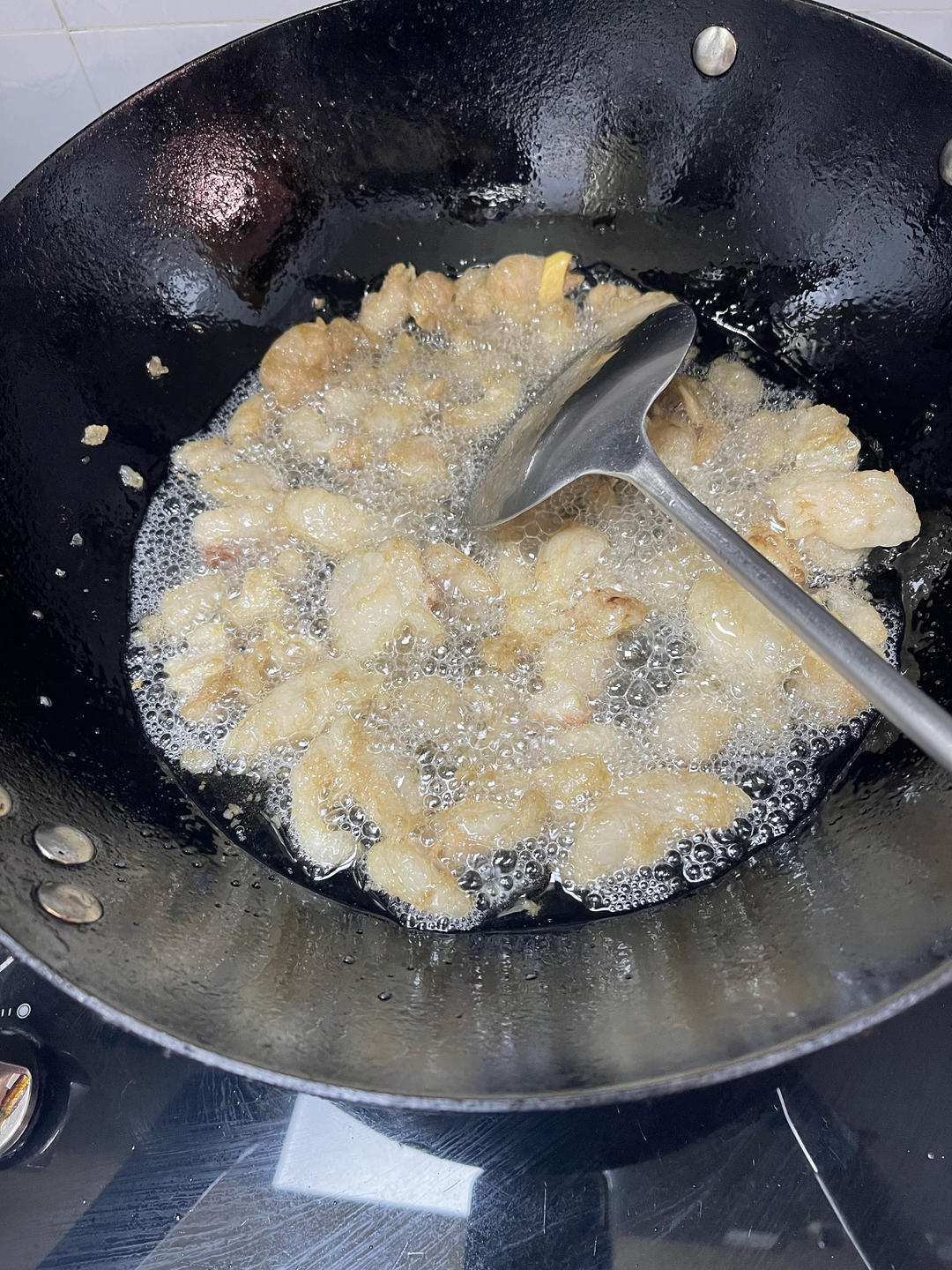 挺好的,不过没有放水,洗猪板油的时候不用沥干,挂住的那点水足够不粘锅了,最后没敢炼太干,怕糊了……