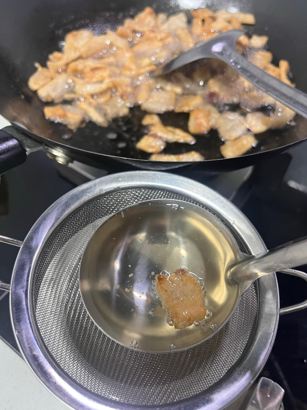 第一次尝试熬猪油,很好玩,而且熬出来的猪油渣又炒了年糕,可太好吃了!