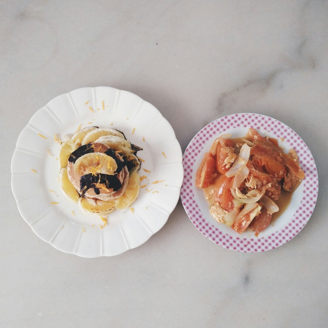 回來這裡的第一頓早餐!想我的鬆餅了,所以做了 orange choco p...