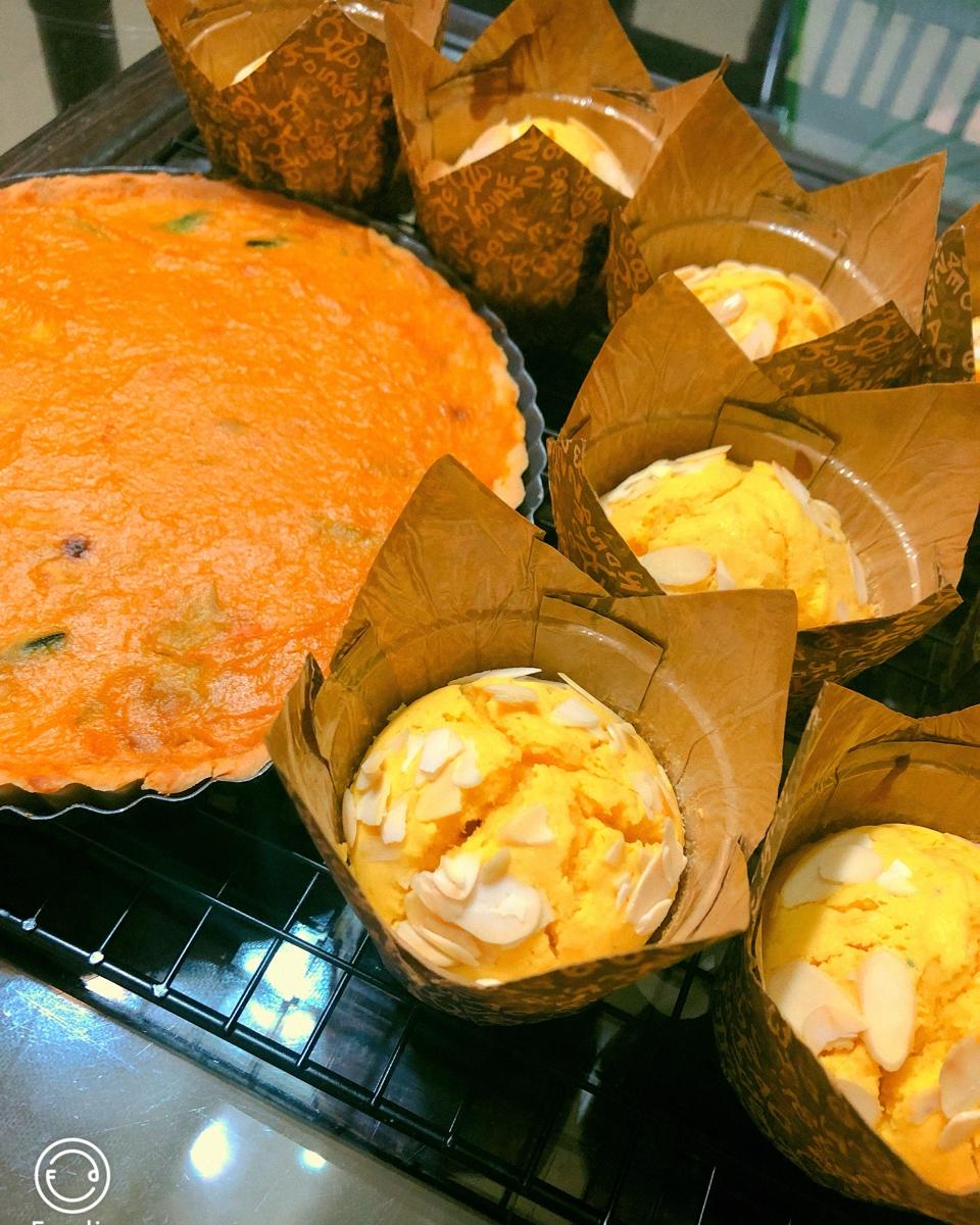 做了个南瓜派,最后南瓜有多的又做了一盘南瓜马芬,今天是南瓜宴呀😄🎃🎃
