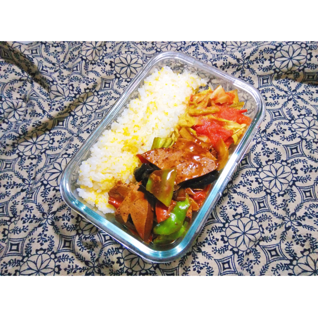 杂粮米饭(怎么总是玉米碴子,因为我早上临走总是忘记泡豆子),番茄圆白菜,熘肝尖...