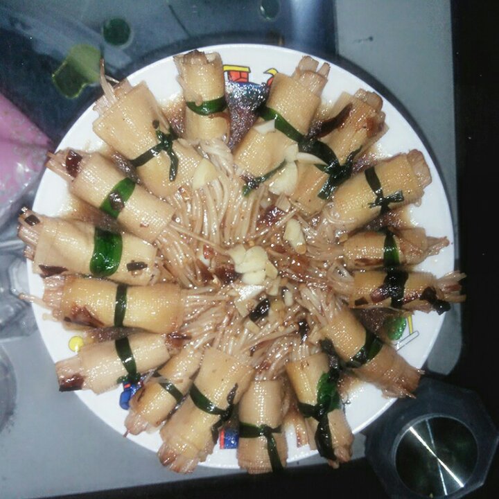 千张金针菇卷,老公非常满意,32个赞。