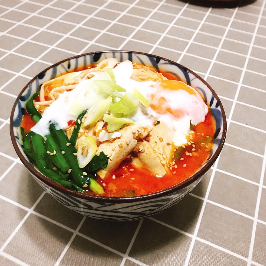 すきやき肉豆腐 チゲ鍋風 温玉のせ