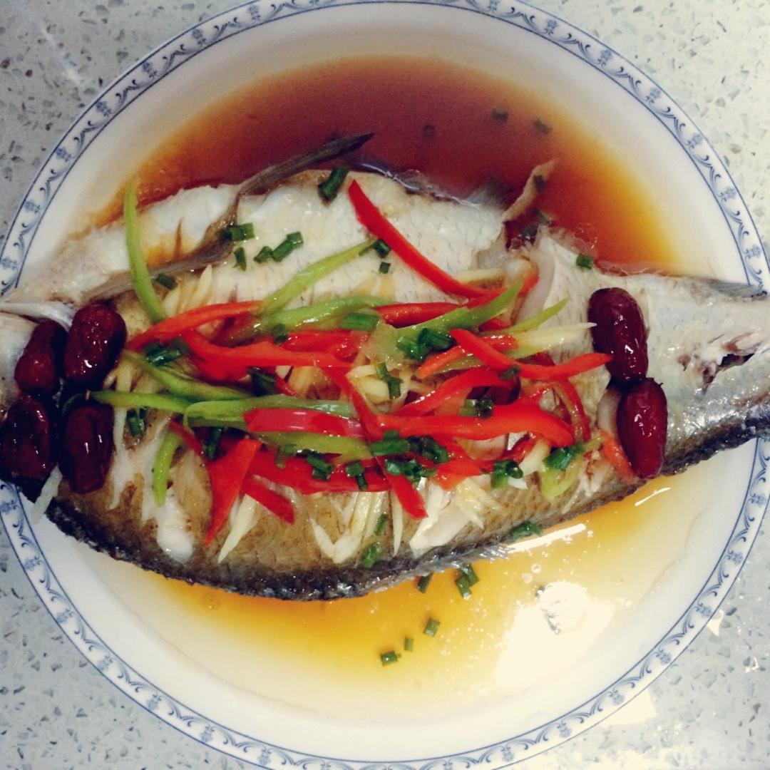很满意的一次晚餐,味道好吃没话说!清蒸鱼正反抹上盐和料酒,腌制20分钟,蒸15分钟,出锅撒上姜蒜丝,我另外又撒了青红椒丝...