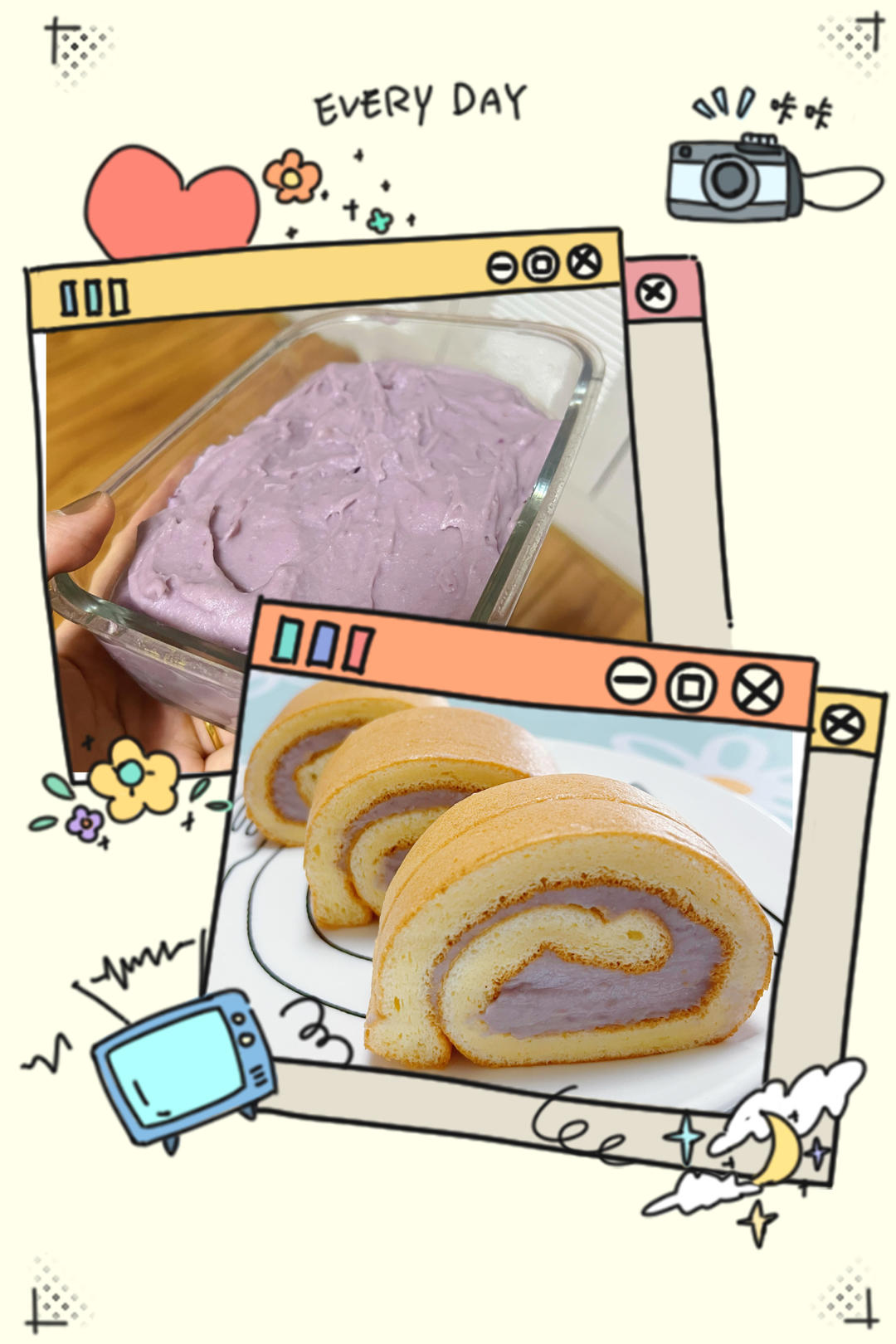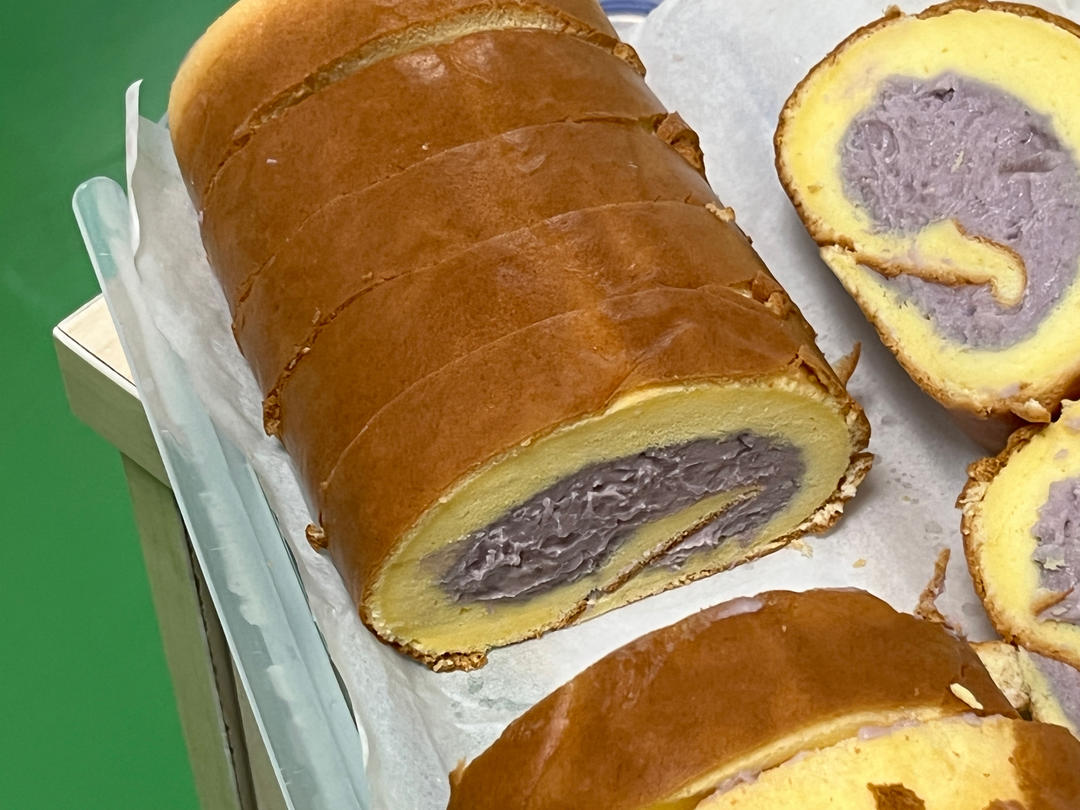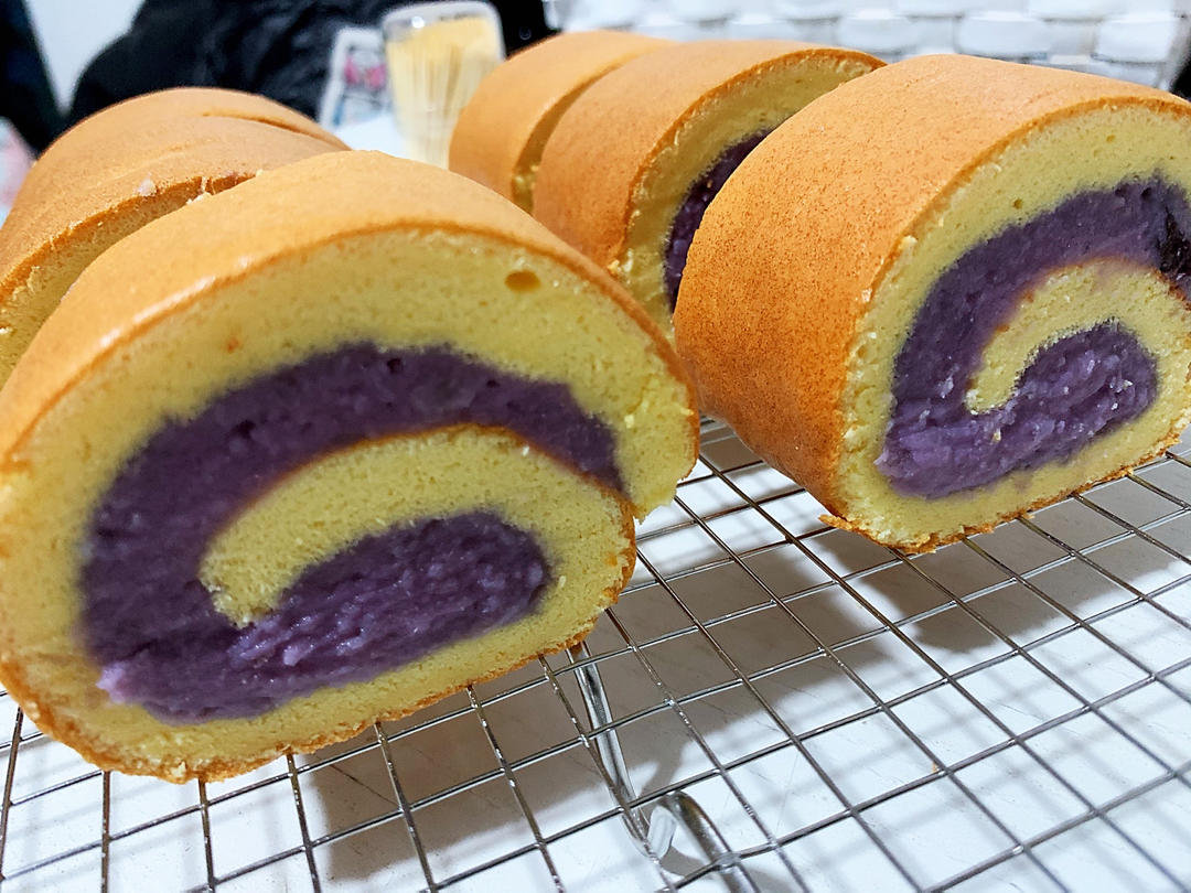 但凡做蛋糕卷,必用此方,本来想把芋泥和肉松组合一起卷的,无奈某人反对,于是分别卷了两款。