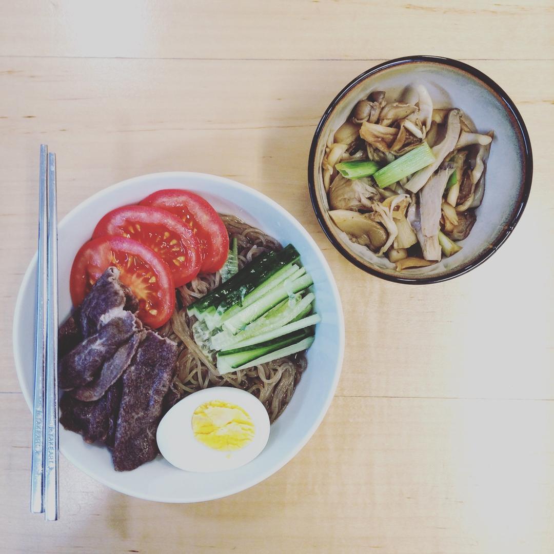 夏天就是冷面的时间 一碗冷面一碟孜然平菇 幸福的一顿
