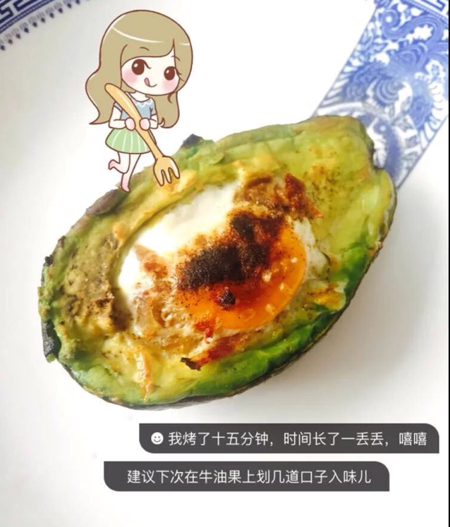 吃货爱尝鲜,牛油果烤鸡蛋。