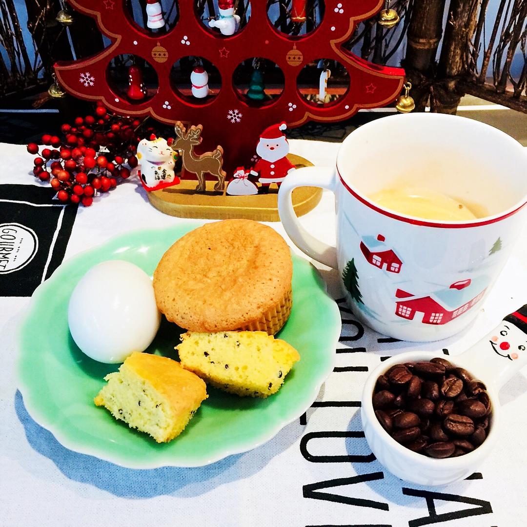 今日早餐:紫薯铜锣烧、玉米、鸡蛋、现磨咖啡