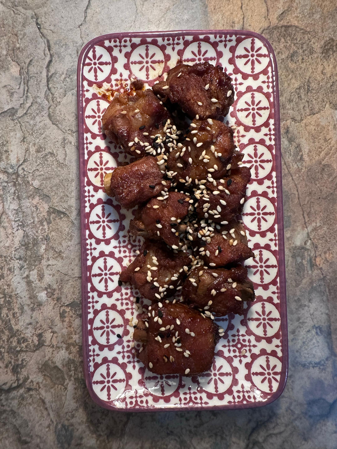 方子很好👍换了压力锅10分钟,把汁倒起来,(留着再煮鸡翅)再开盖收汁,排骨干身上碟,最后撒了点芝麻。