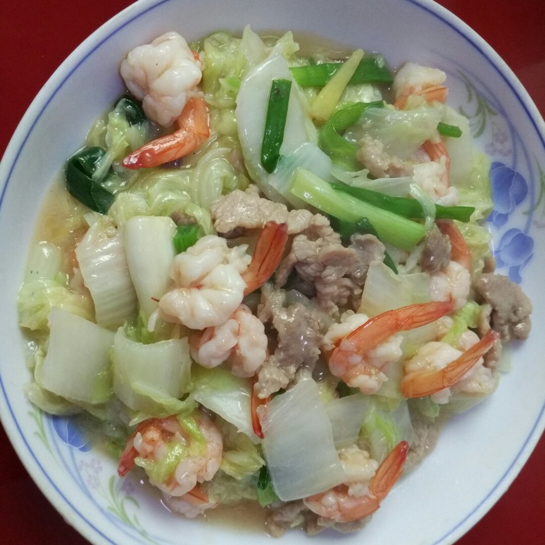 虾仁瘦肉炒白菜,香甜可口!
