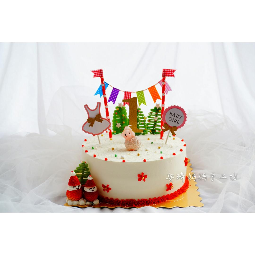 8寸圣诞元素,羊宝宝周岁生日!圣诞树用豆沙做的,失败了好几次,好在最后成功啦