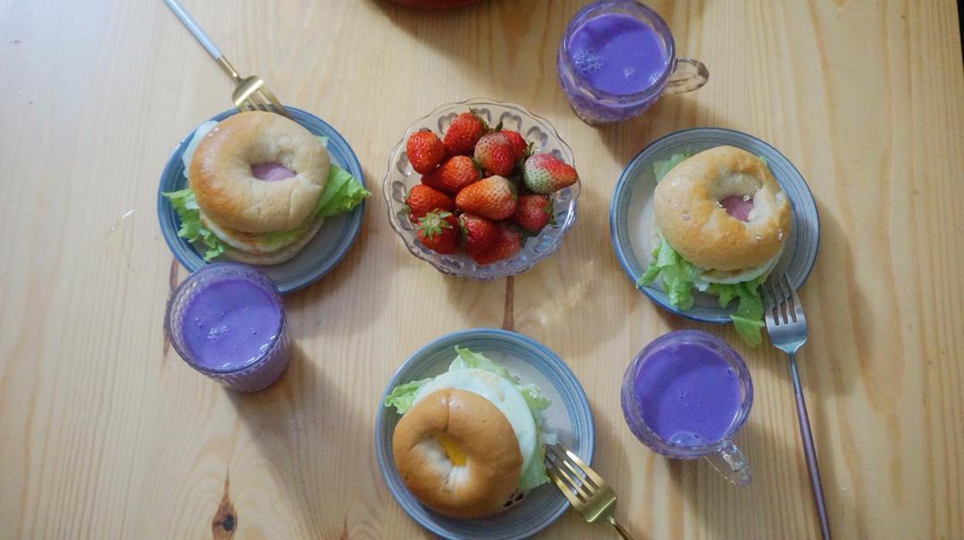 今天有健康的贝果早餐