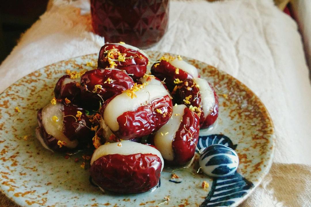 没有糖桂花,就用桂花加蜂蜜加一点水来代替咯~桂花的味道和这个小甜点超级搭!