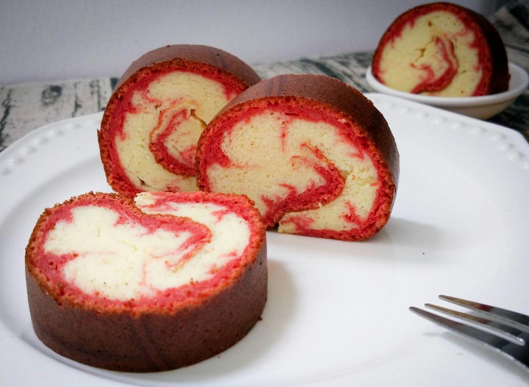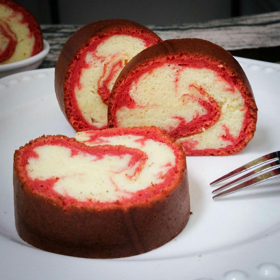 把烫面蛋糕卷和电饭煲蛋糕和旋风蛋糕卷结合了一下就出现了这货😂