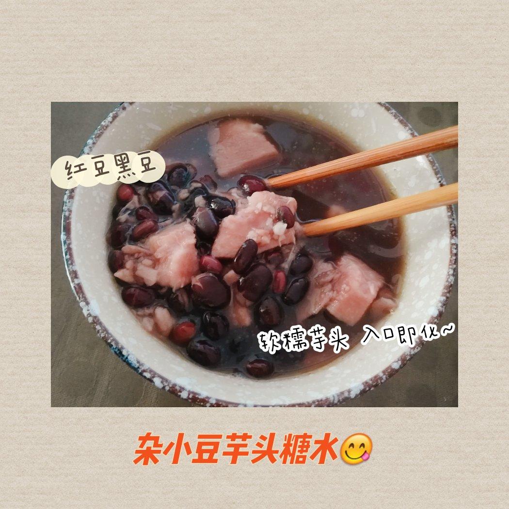 红豆泡好 黑豆 芋头切成小块儿 冰糖儿几勺