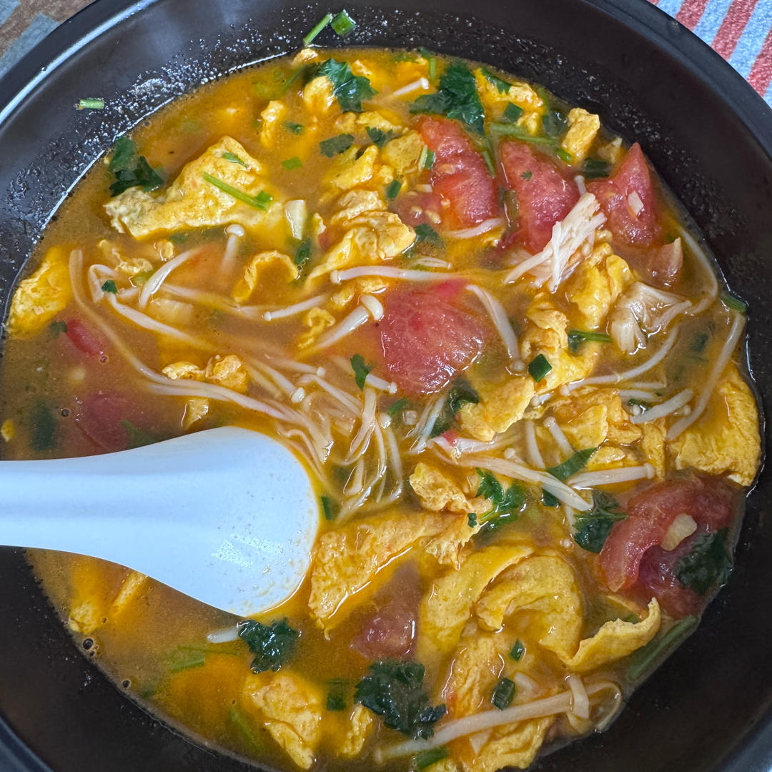 西红柿金针菇鸡蛋汤