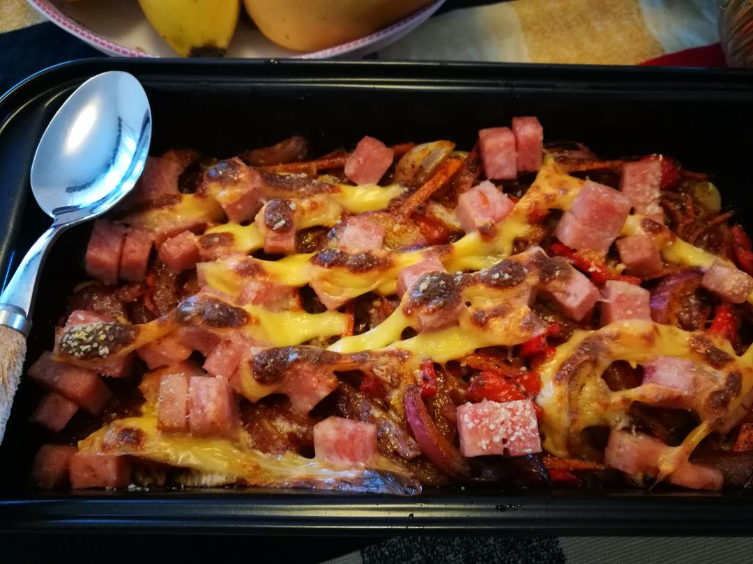 加入午餐肉,味道还不错,芝士放少了点