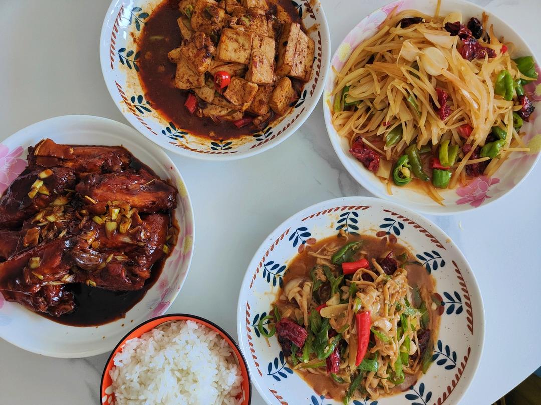 麻婆豆腐 酸辣土豆丝 青椒茶树菇 苍天 我能干3碗米饭🍚