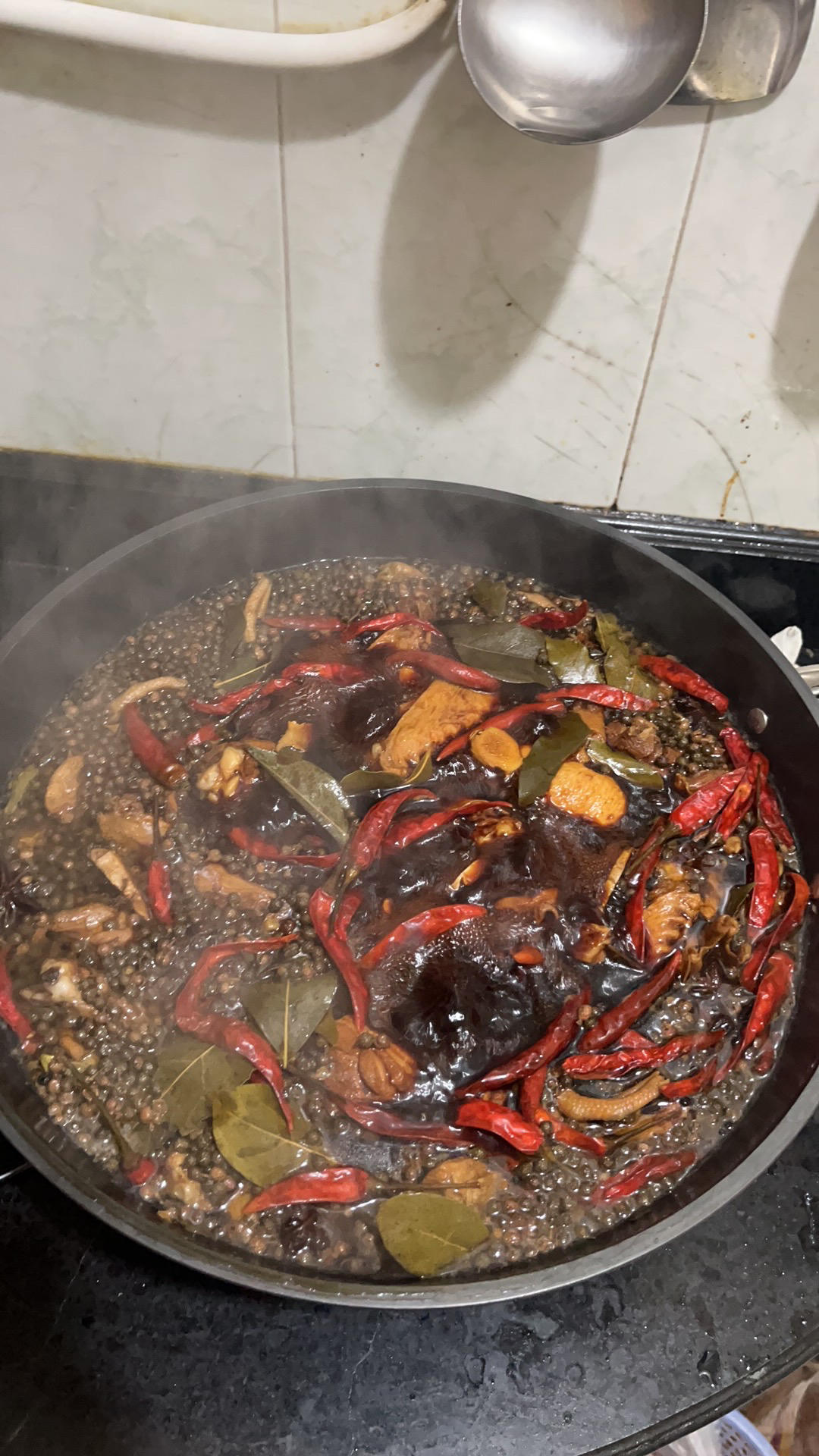 2斤鸭舌1斤鸡尖,其他量相同,放了一勺半的冰糖,多放了一小把花椒,没放豆蔻改放山奈(家里没有了,哈哈哈),加大小米辣和干...