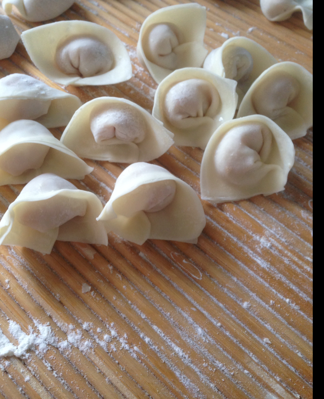 中午做的,肉里放了一点圆白菜,还有一种虾仁鲜肉馅的