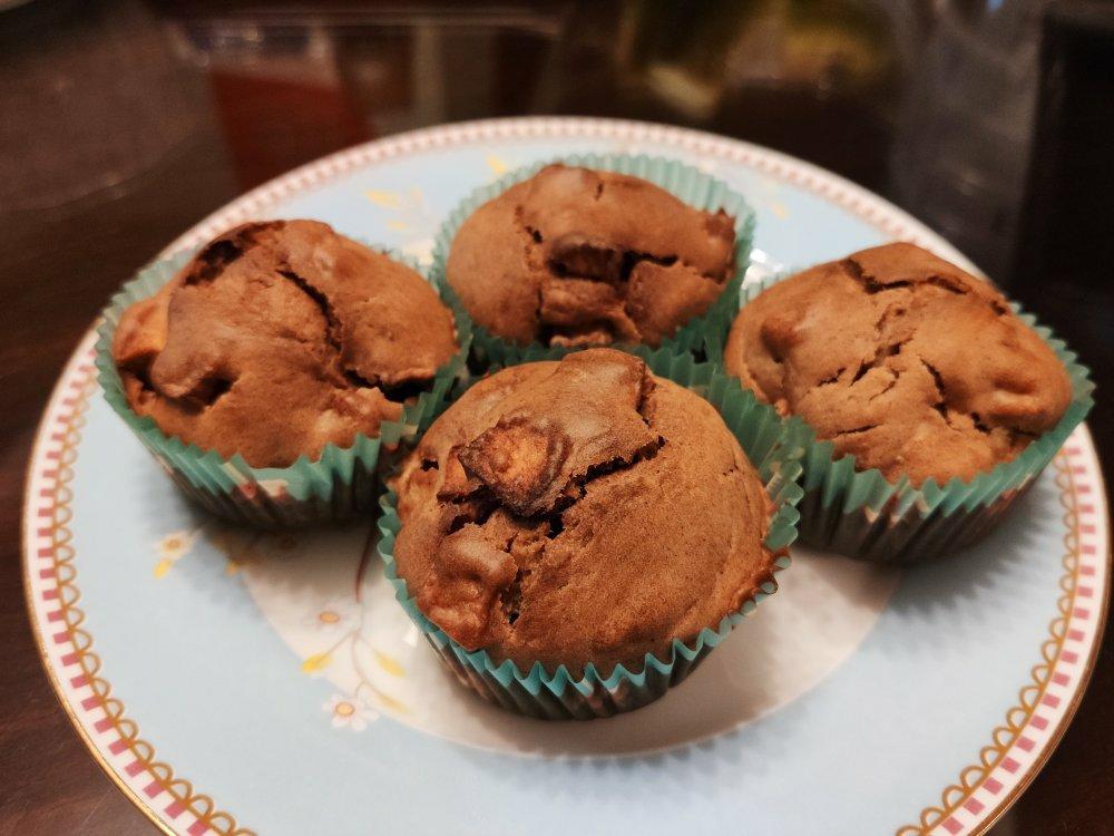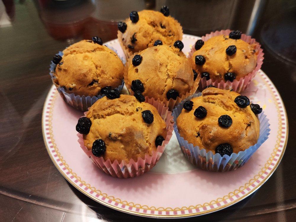 第一次用黄油做玛芬,香啊。出炉的时候还能看到在爆浆,太诱人了。