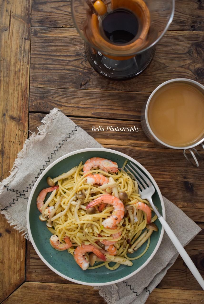 鮮蝦義大利麵~就這樣簡單加點牛奶,也很好吃