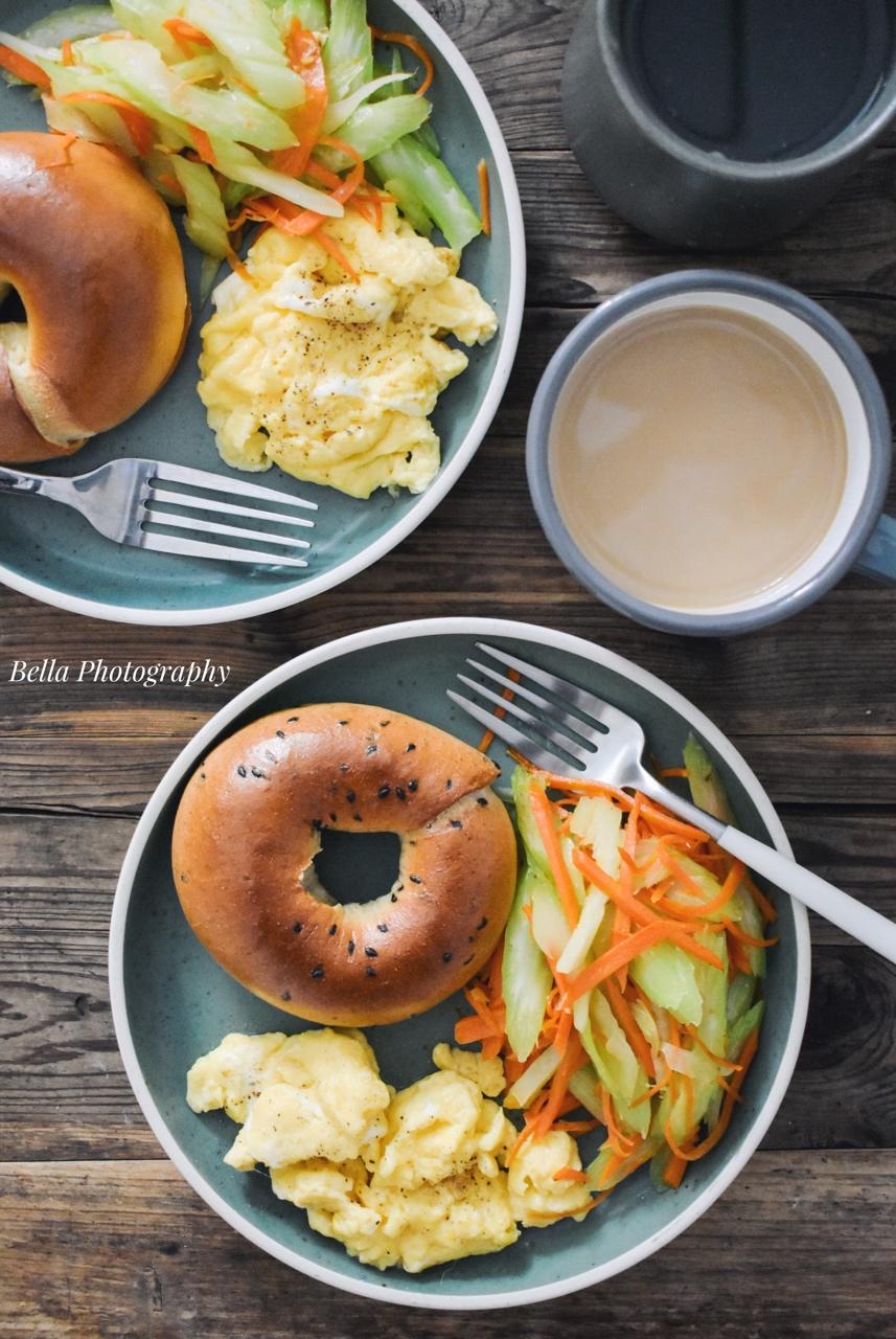 貝果是自己做的,我吃的是黑芝麻全麥貝果,那位先生吃的是紅豆牛奶貝果⋯⋯ #早餐•2017年10...