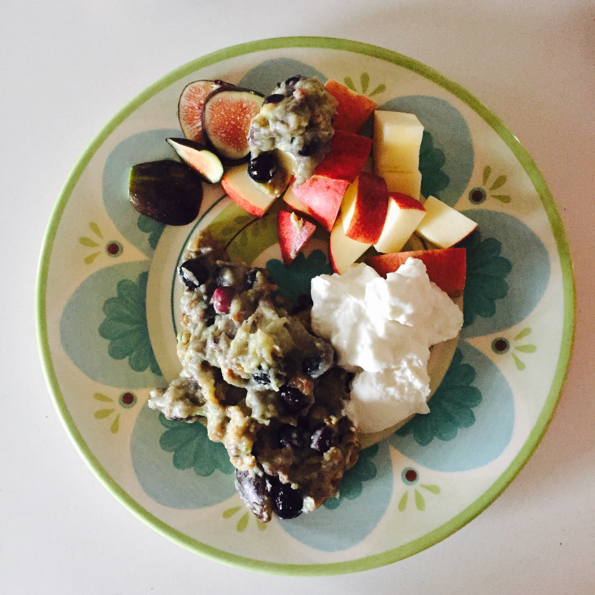 面粉放少了,失败的pancake。不过有放牛油果和香蕉,还有蓝莓和无花果。健康的东西,再丑也要吃完z #早餐•2016年...
