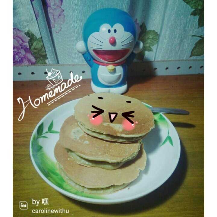 正好有多的抹茶粉加上自制的红豆泥做铜锣烧真的超棒 简单上手又美味 早餐配上养乐多还有哆啦一天心情都超好 おいしい٩۹(๑...
