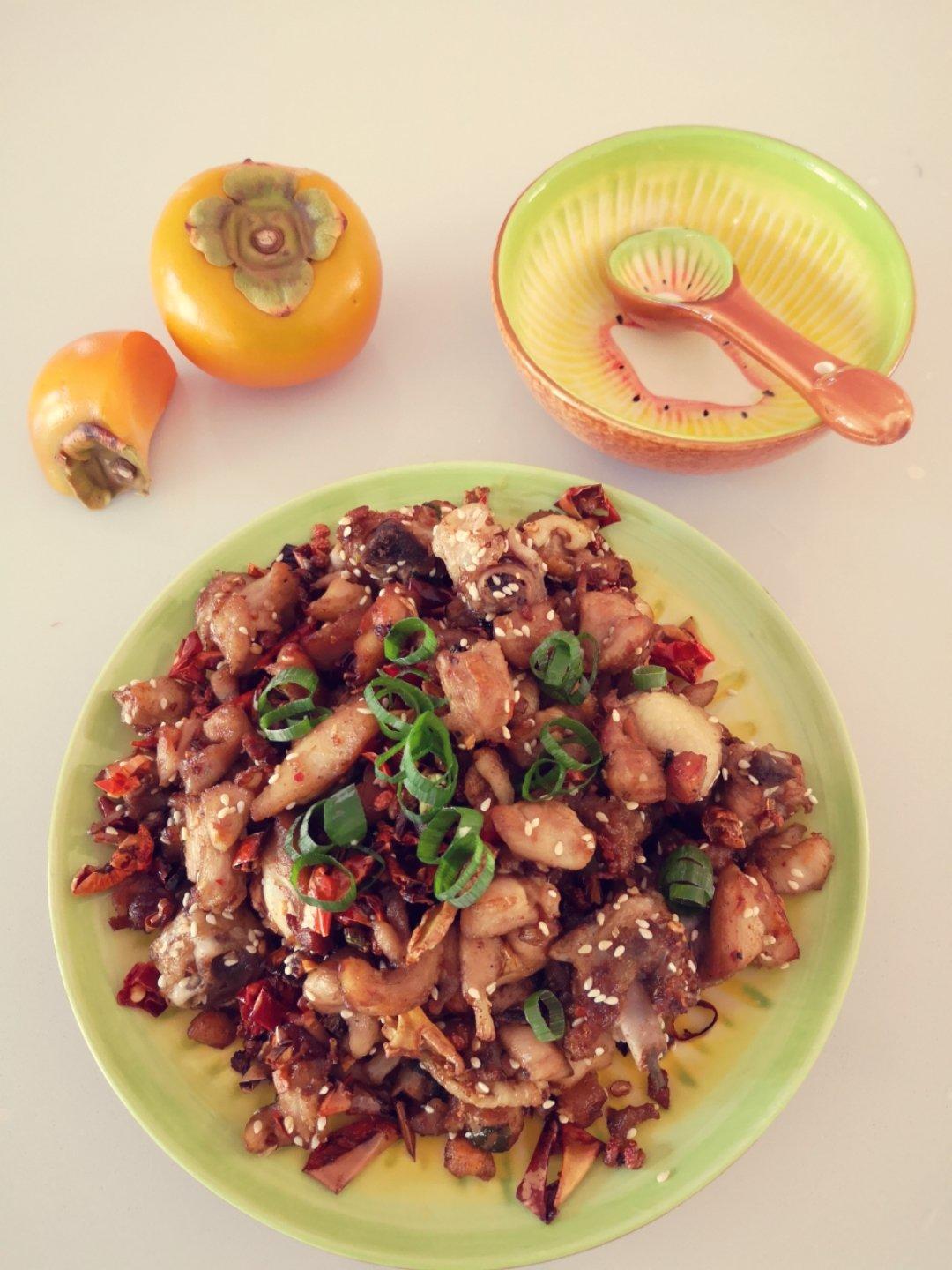 试着做辣子鸡,可能炸的时间有点久了,口感有点柴!下次努力!😜😐