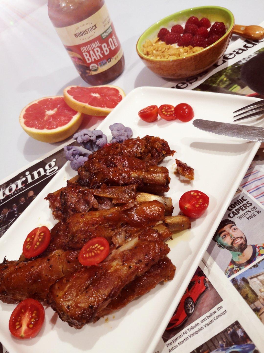 美式烤🐷肋排,昨晚上就加好各种香调料腌制排骨18小时,下午拿出来往烤箱一扔1...