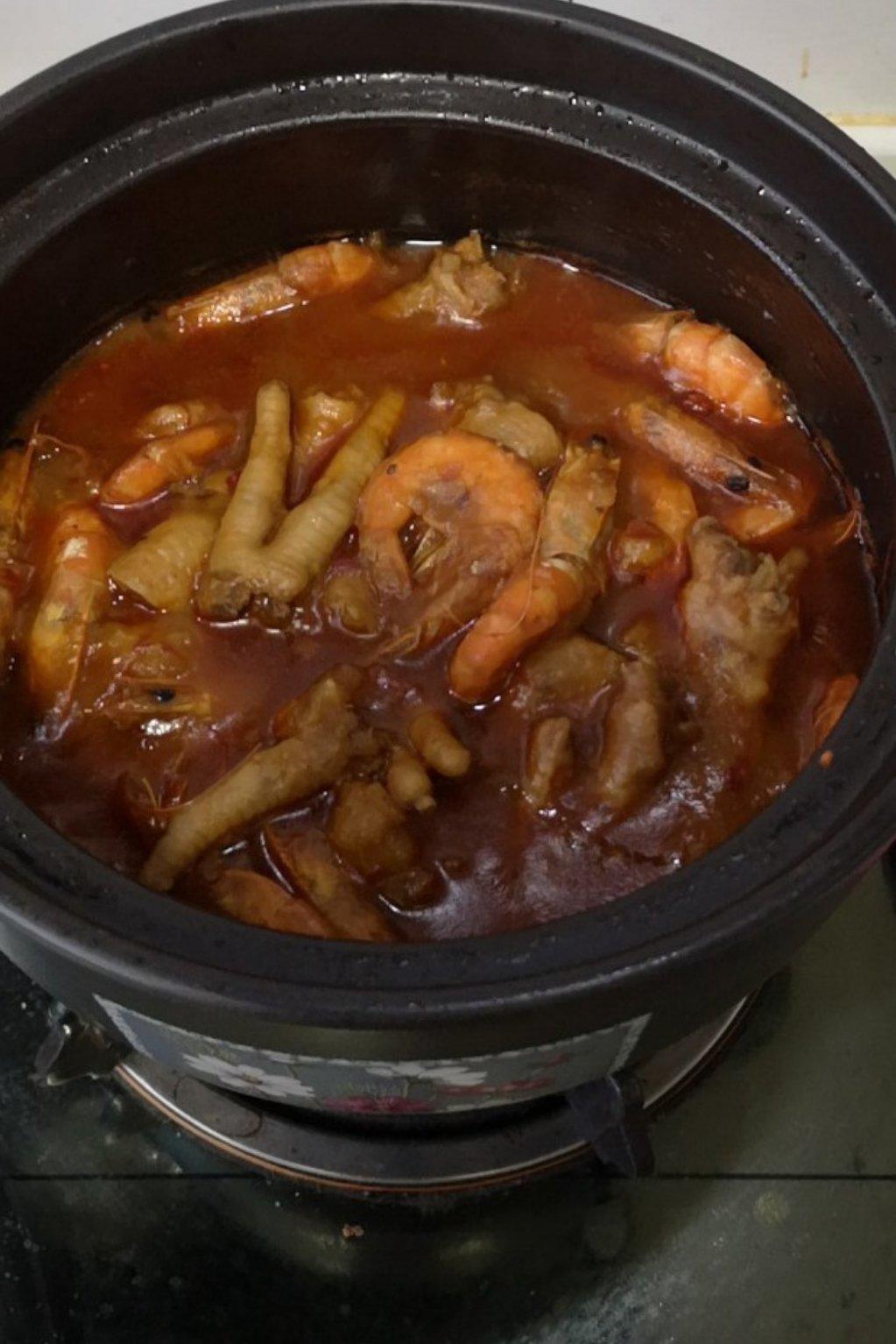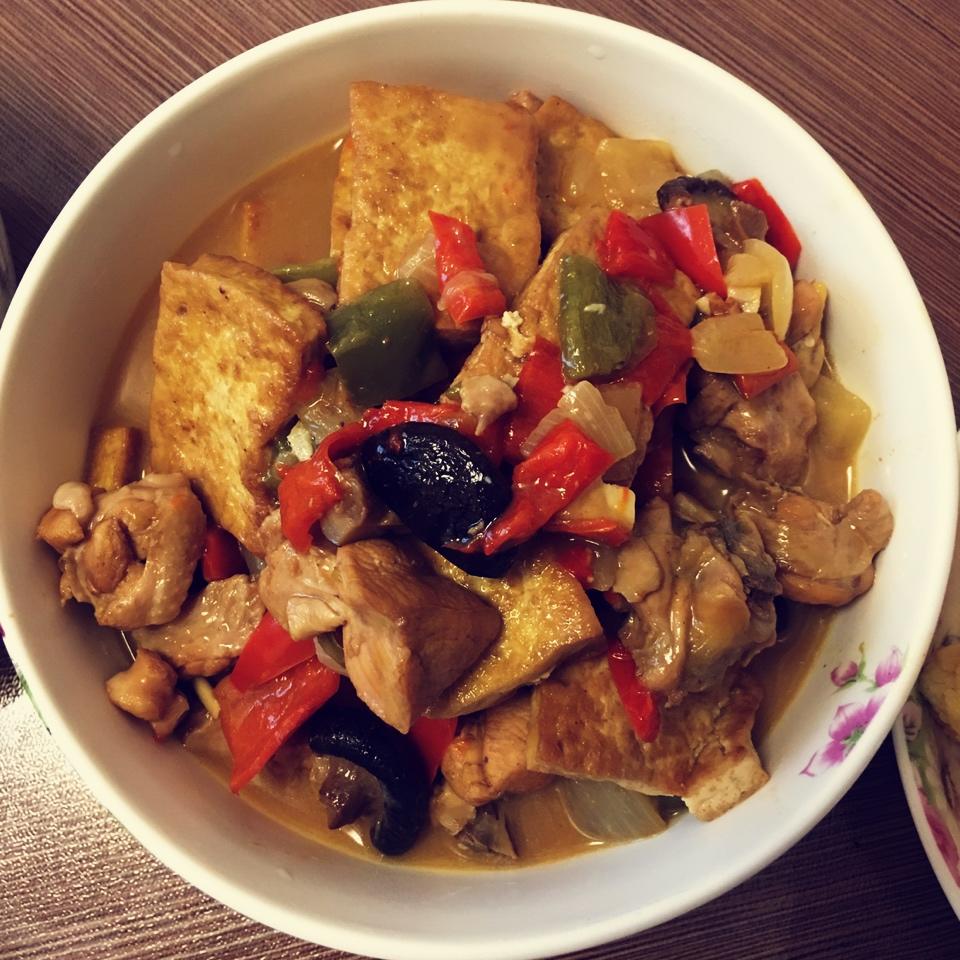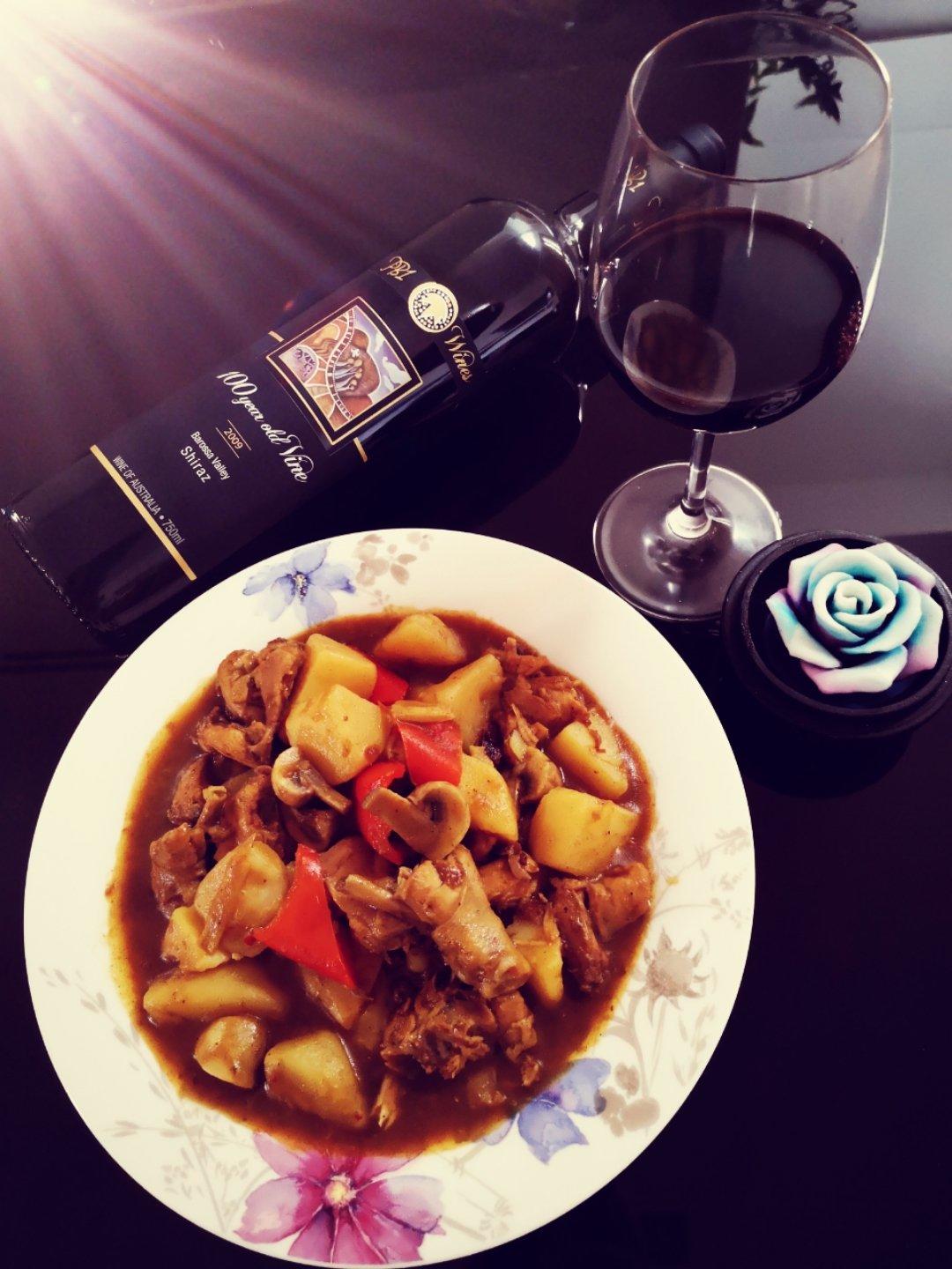 一家人的晚餐,泰式咖喱鸡搭配南澳百年老藤葡萄酒!😻?