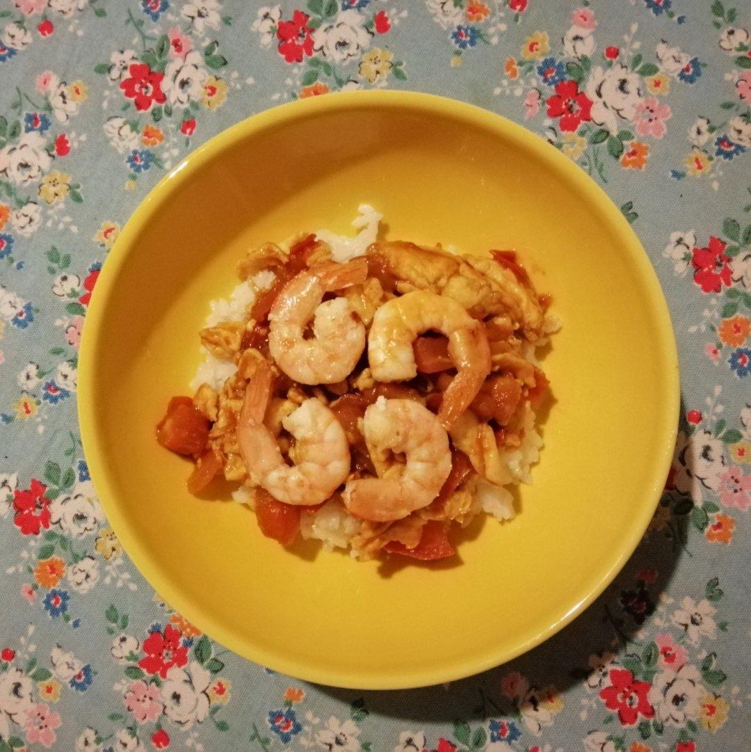 难得周五晚上闲在家里 番茄炒蛋加鲜虾 营养又健康