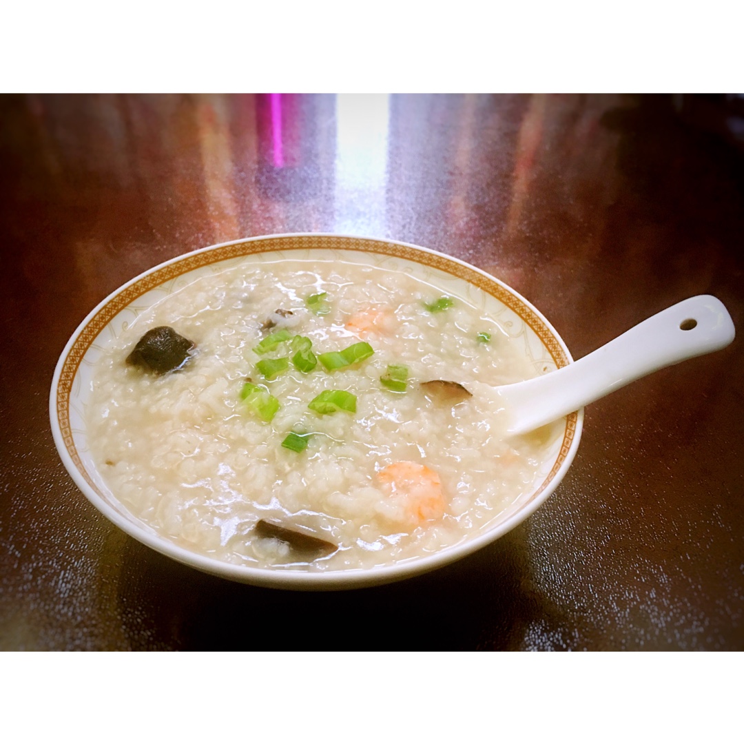 病号饭。。鲜虾香菇粥 还是用干香菇好。。。。