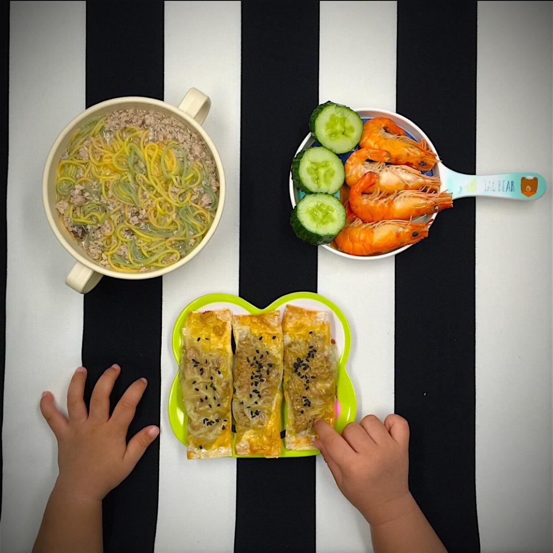 Huey's dinner【虾仁肉末香菇面➕虾仁肉末香菇卷➕鲜虾➕黄瓜】