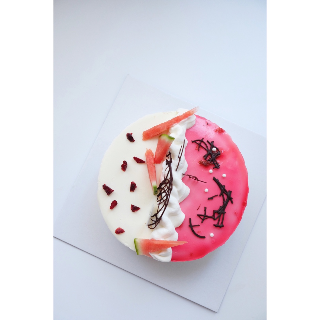 其实我这次的蛋糕体做的不好,出现大气泡,搅拌的时候就知道大约不成了,可是我并不会再紧接着做一遍,因为没有花和叶子了⋯⋯哪...