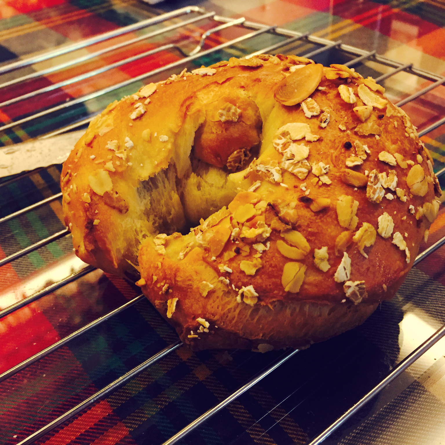 用剩的披萨面团,傻傻地醒了一个小时,接口处不够完美,圈地不够均匀,但被粑粑夸赞了也算是小小的幸运了,附上在荷兰吃过的贝果...