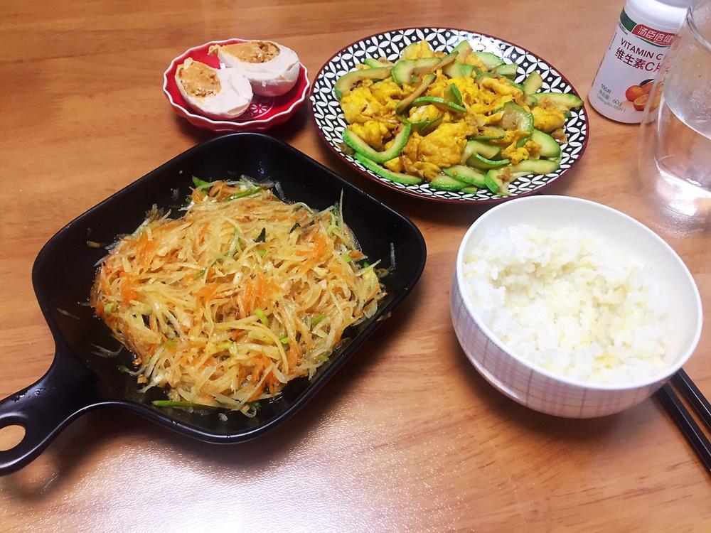 炝拌土豆丝,西葫芦炒鸡蛋