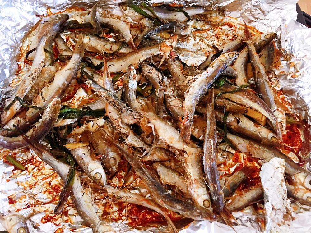 ♨️早上急匆匆去给娃儿开会,回来的路上饿得肚子咕咕叫[偷笑]进屋就把昨晚腌制的鱼烤上了[晕]忘了放油[抠鼻...