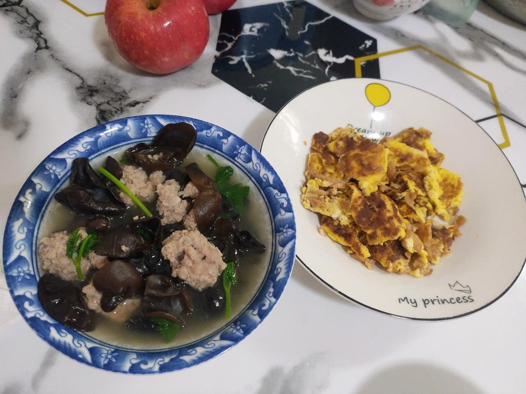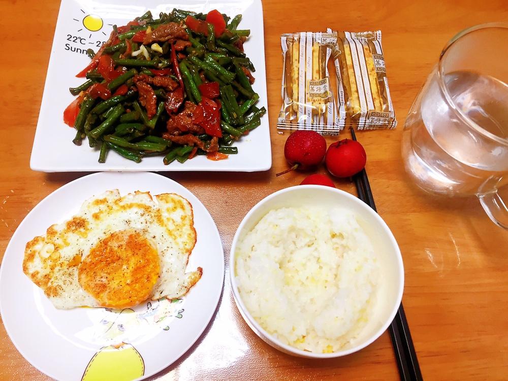炒豇豆,煎荷包蛋
