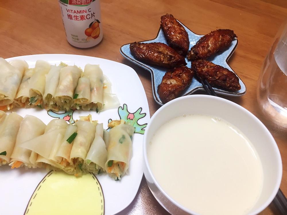 小春饼,空气炸锅鸡翅,豆浆