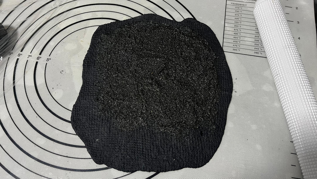 外皮加了竹炭粉,内陷儿裹了很足量的黑芝麻酱~