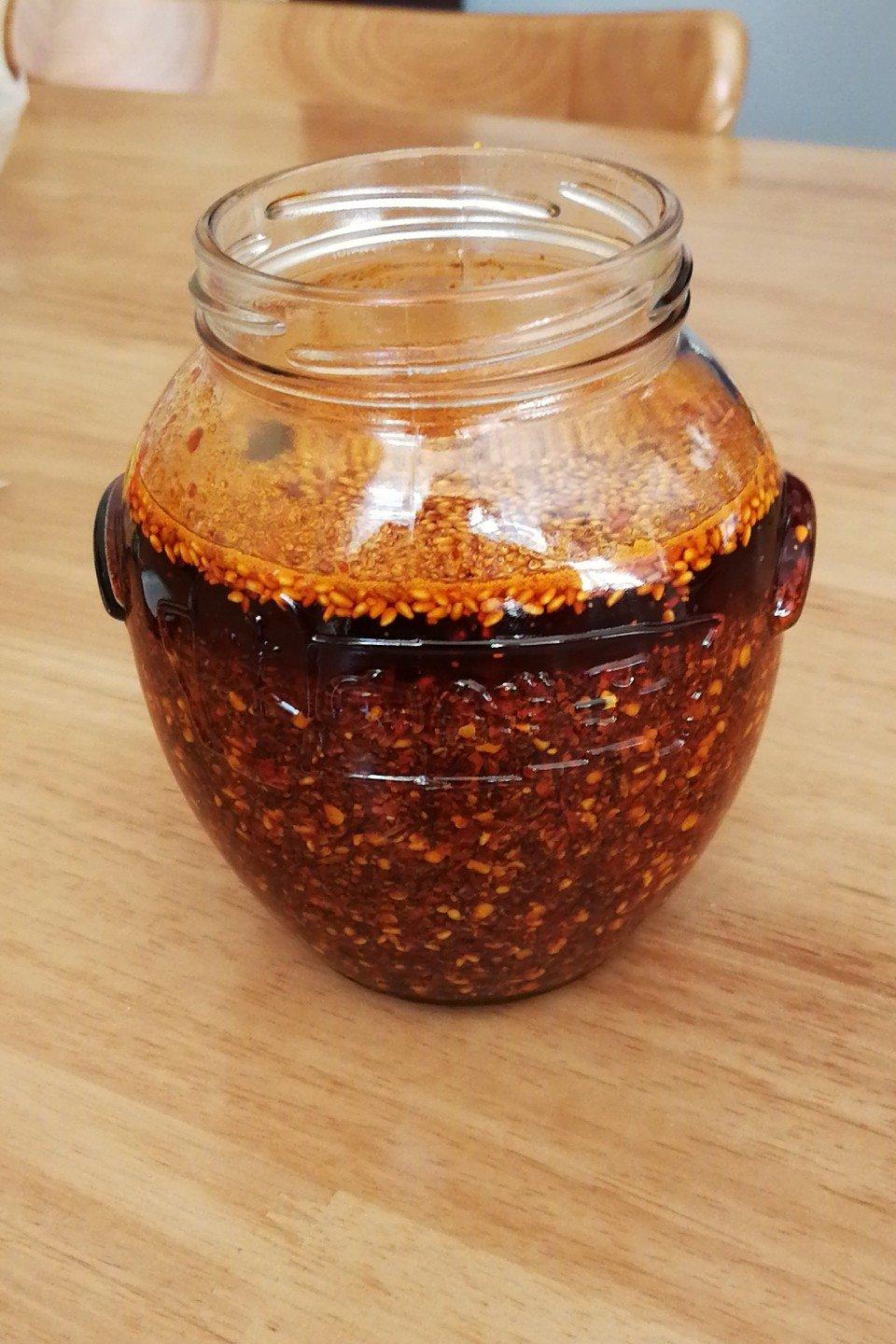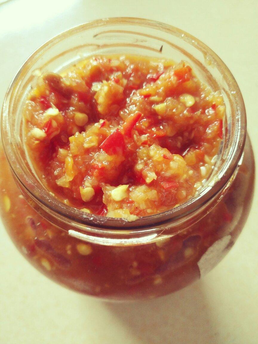 辣椒放少了,多加了梨。还没冷却就忍不住尝了,好吃