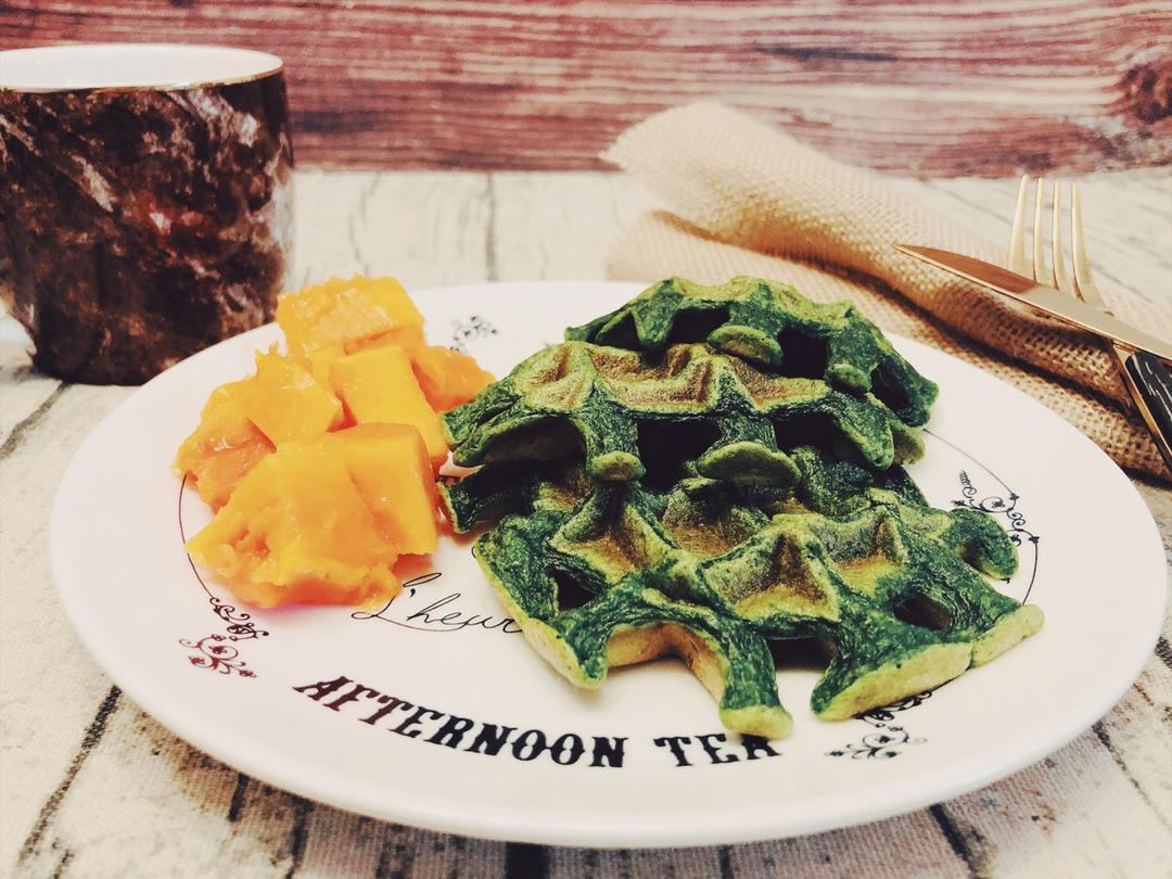 羽衣甘蓝➕菠菜,自制健康华夫!healthy,healthy,healthy!华夫也可以很低脂#早餐•2019年2月4日...