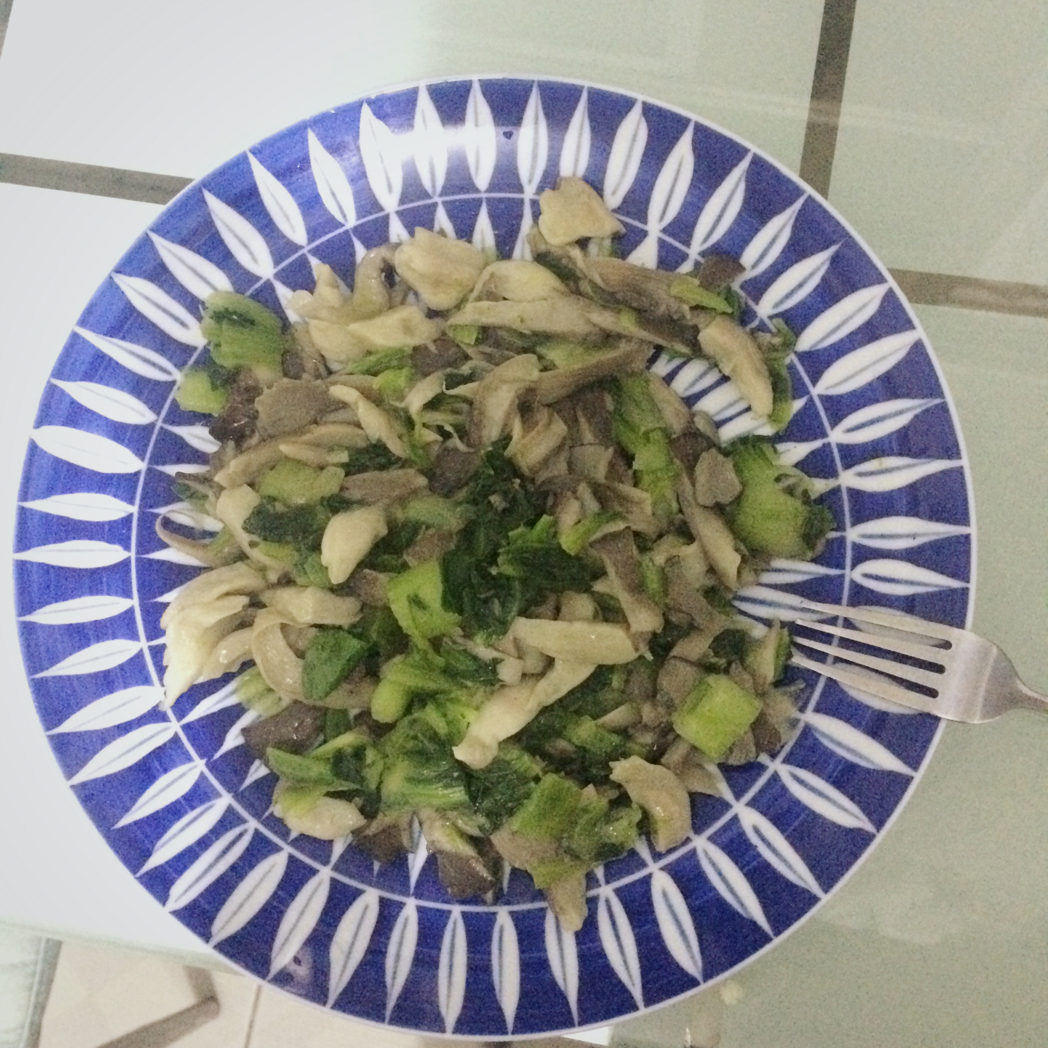油菜炒蘑菇,不过油菜放少了,怕蘑菇不熟就多炒了一会,结果把油菜炒没了。第一次做,以后要加油奥~ #晚餐•2016年2月9...