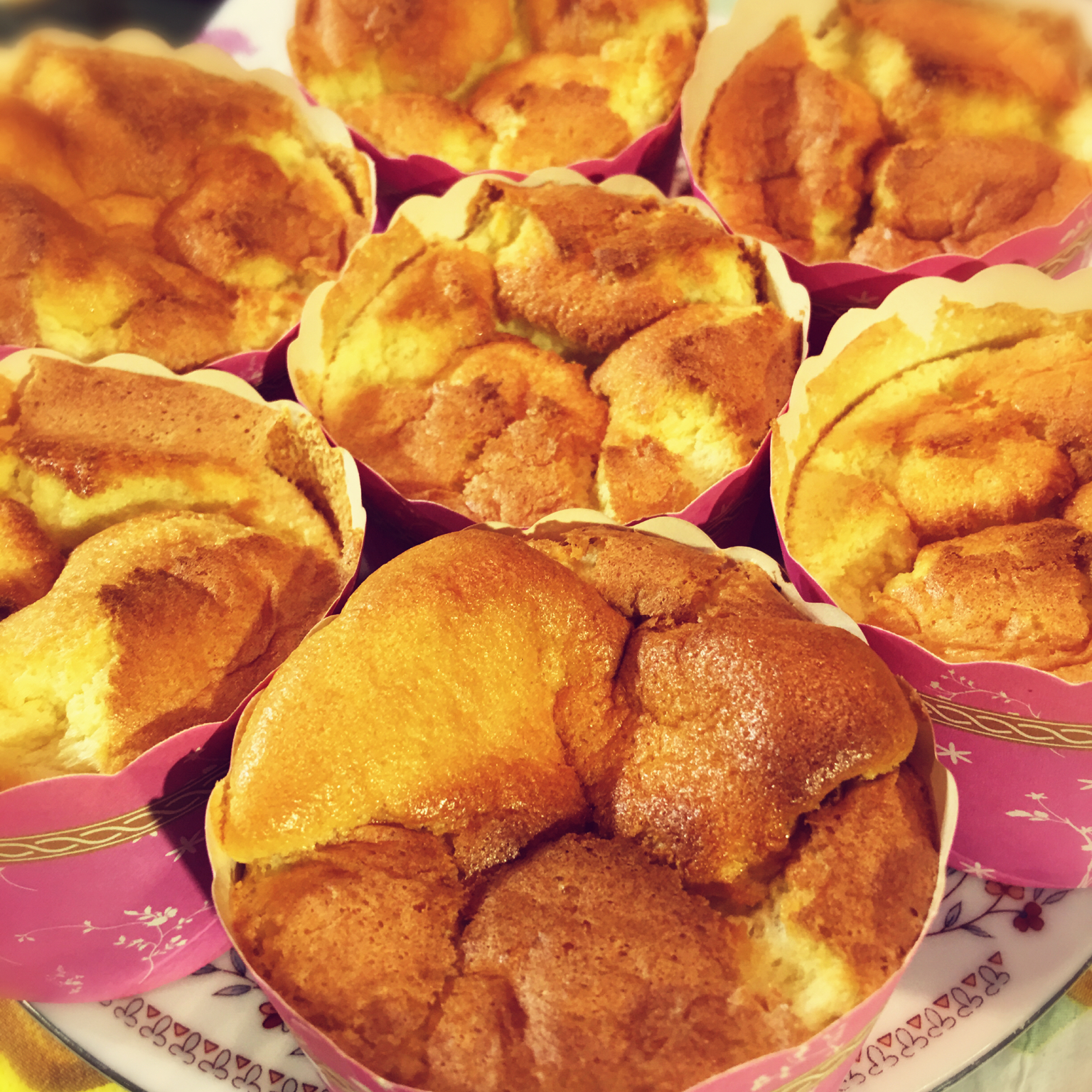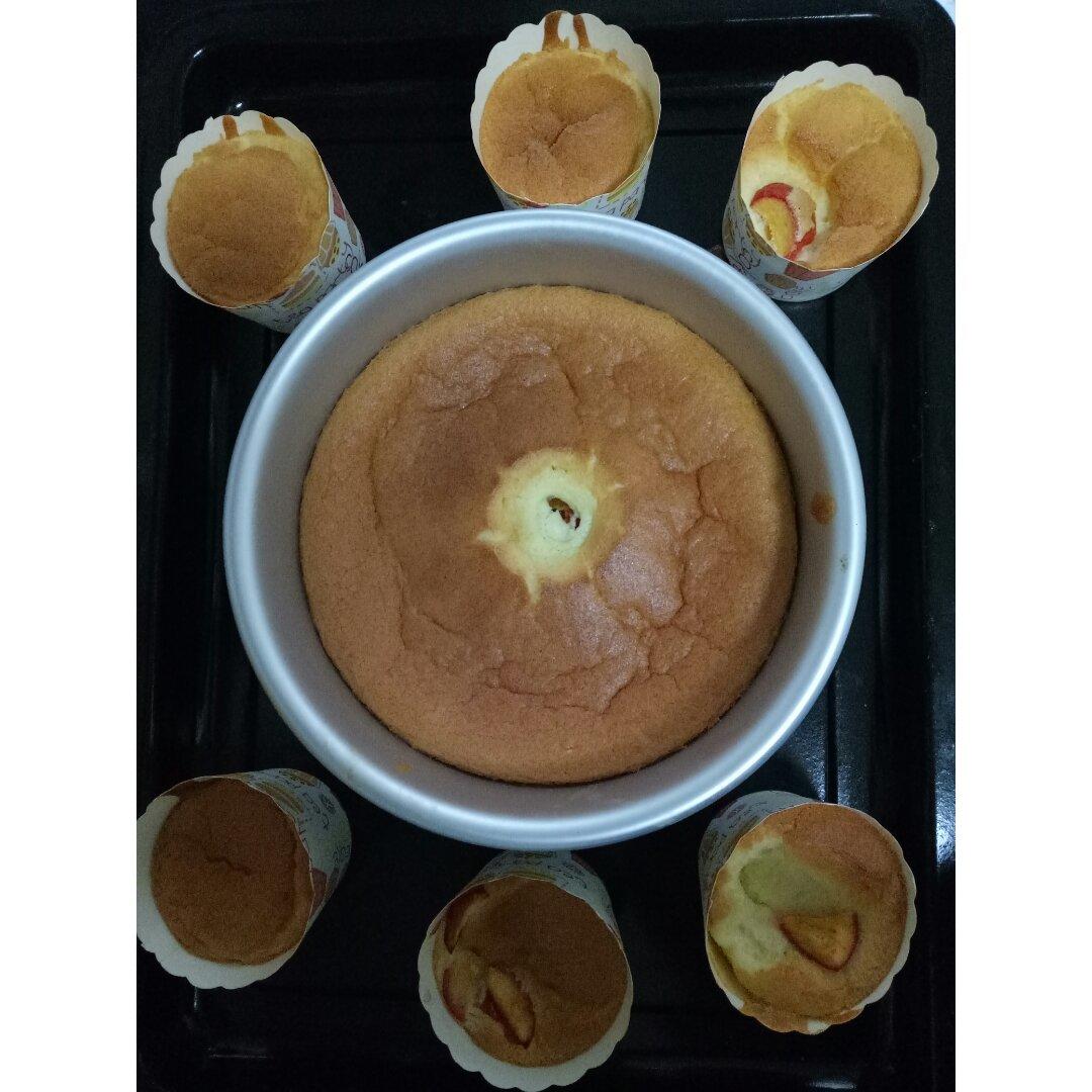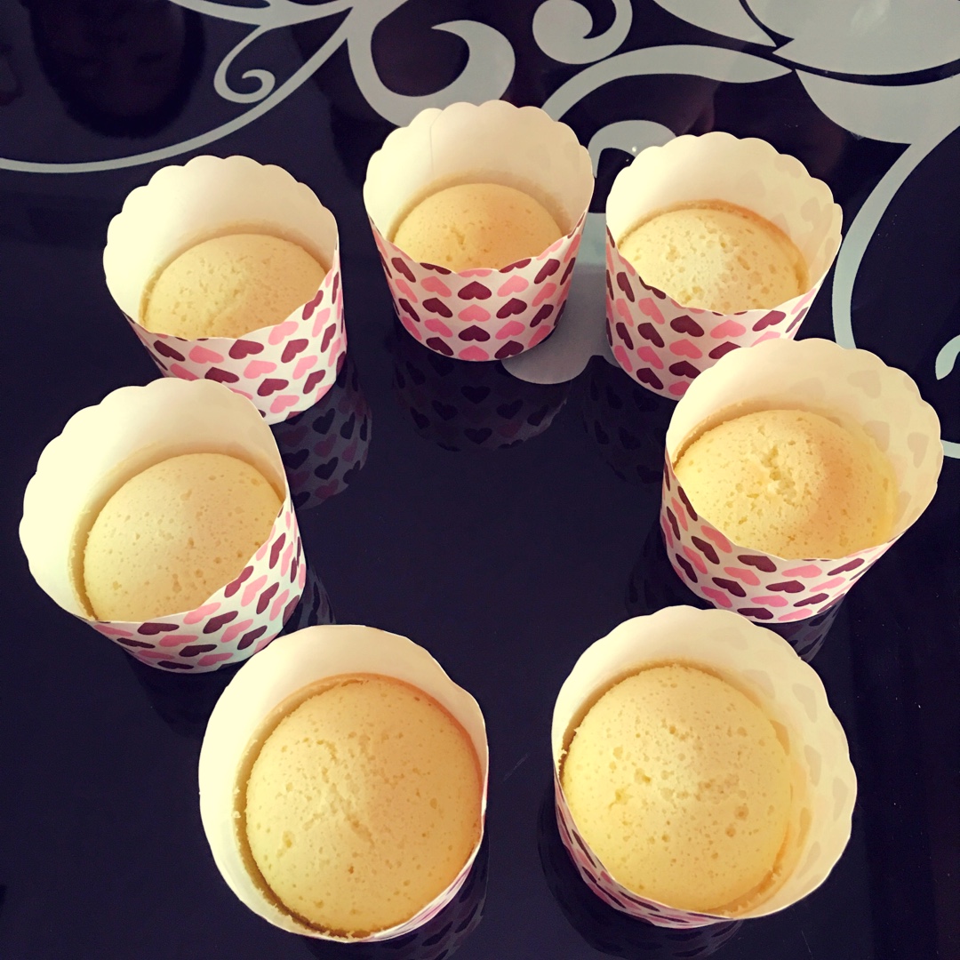 第一次做蛋糕,还不错噢😜。糖是随意加的,弄了6个纸杯蛋糕,剩下的倒进了六寸模具中了🎂