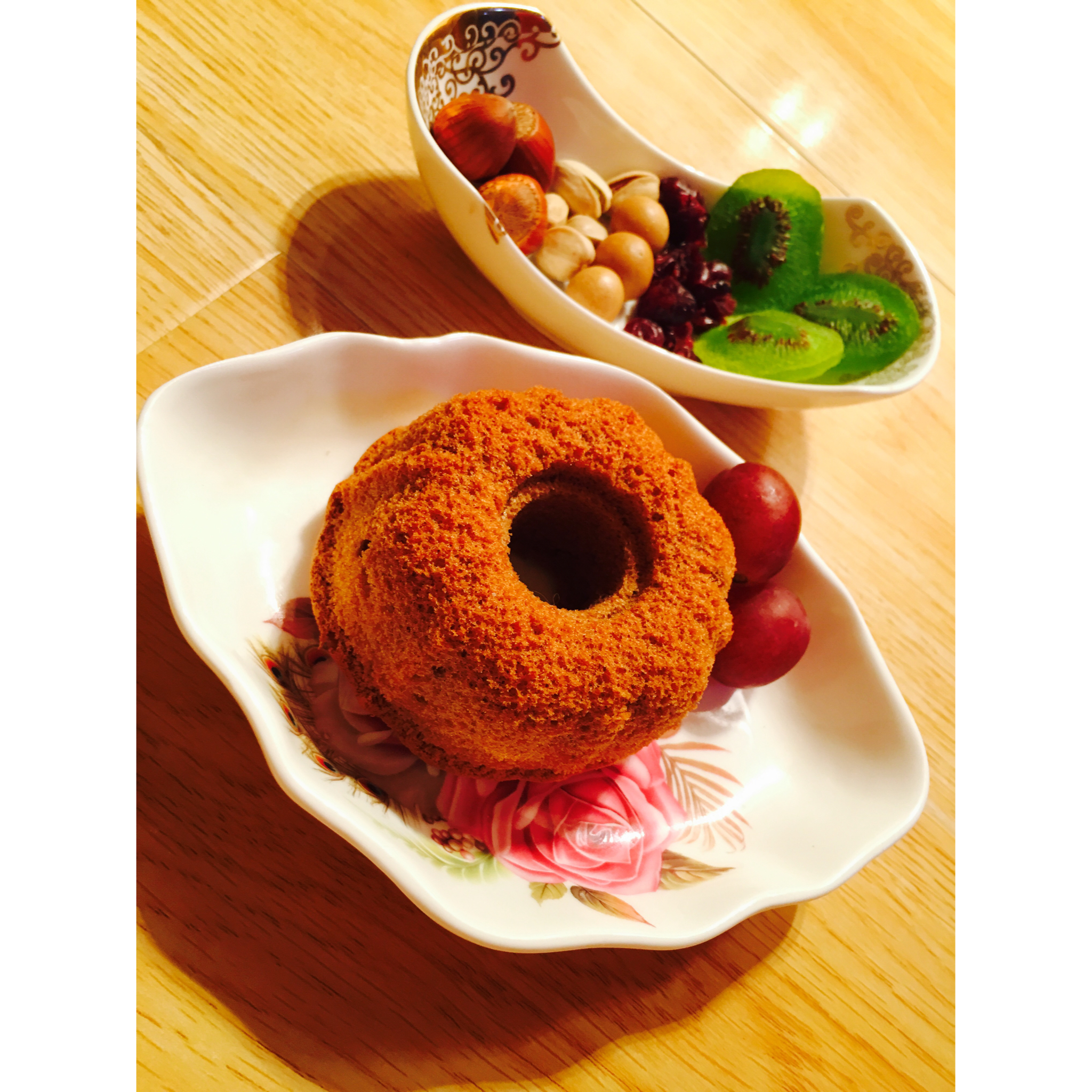 按配方的材料,最后分成两个6寸模具来做的。外形看起来还不错,但口感不是很理想,不知哪个环节...