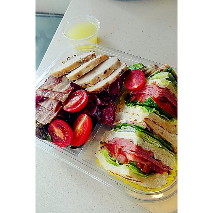 鸡胸肉、培根、圣女果、紫甘蓝