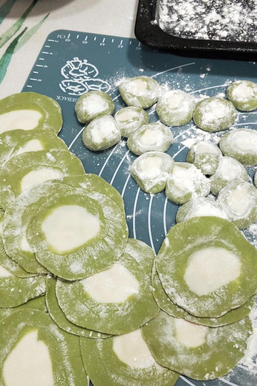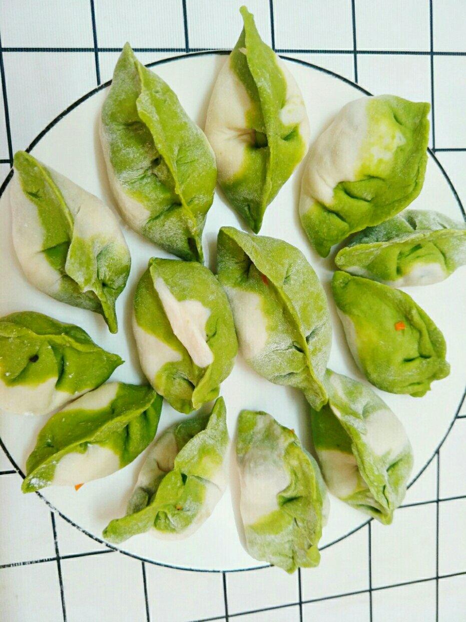 第一次尝试双色饺子,是用红薯叶榨汁,味道还不错。